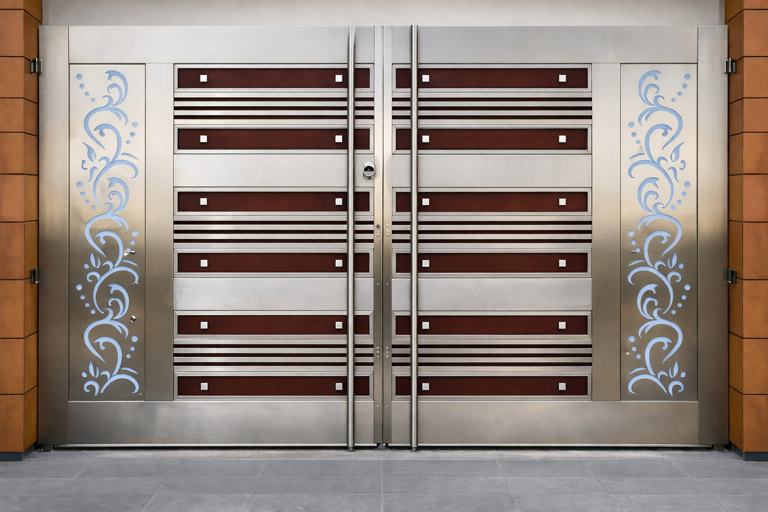 Our Modern Stainless Steel Gates are available in custom sizes and designs to perfectly match your entrance requirements. Customers can choose from a variety of patterns, finishes such as matte, glossy, or brushed steel, and optional decorative elements to create a unique look.